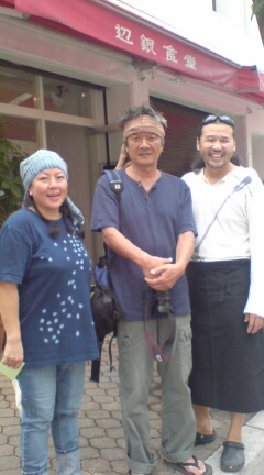 幻の石垣島ペンギン食堂になぜか麺食い調査隊長、椎名誠さんがやって来たのだ。 椎名さんをサンドイッチしてるのがペンギン夫妻です 。